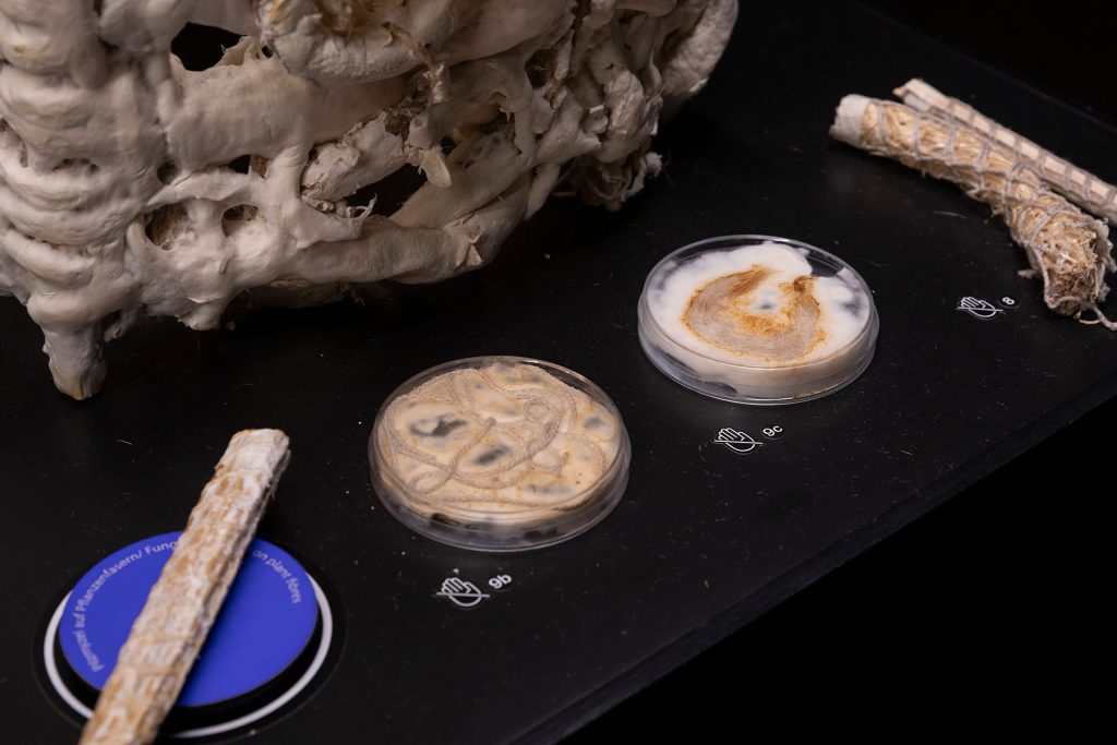 Das Projekt soll zeigen, wie andere Lebewesen unsere Lebensweise verändern können. Wir lernen von ihnen und arbeiten mit ihnen zusammen, um unsere Umwelt nachhaltig zu gestalten. Das Projekt schafft ein Gleichgewicht zwischen der Arbeit im Labor und den Bedürfnissen der Industrie sowie zwischen den Bedürfnissen der Pilze und denen von Architekt:innen. Ein besonderer Dank geht an das Team von Prof. Vera Meyer an der TU Berlin für die Unterstützung im Labor und bei der Erforschung von Fomes fomentarius.