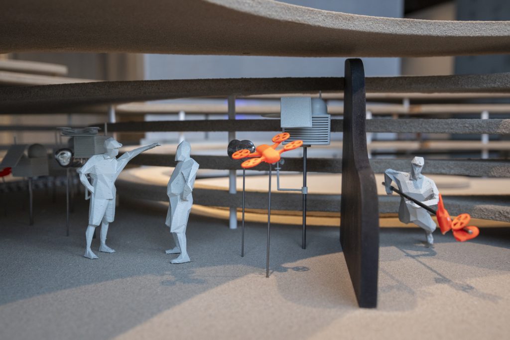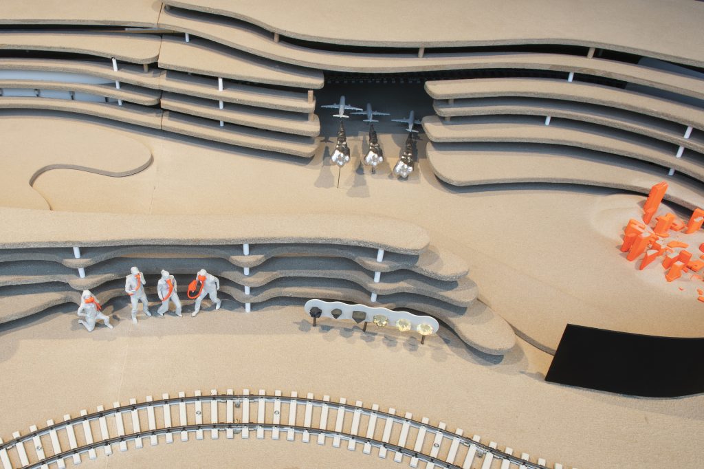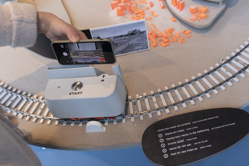Placed on top of the locomotive, the viewer’s smartphone becomes a video recording device, providing an inside view of the Second Dust Bowl, where new everyday strategies, rituals, and business ideas emerge from extreme weather situations. The video is a testament to the loss of supposedly stable ecological conditions, a process that has been ongoing since the mid-20 th century.