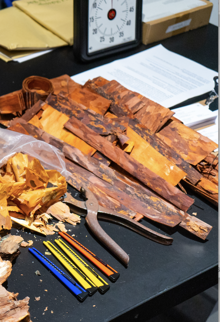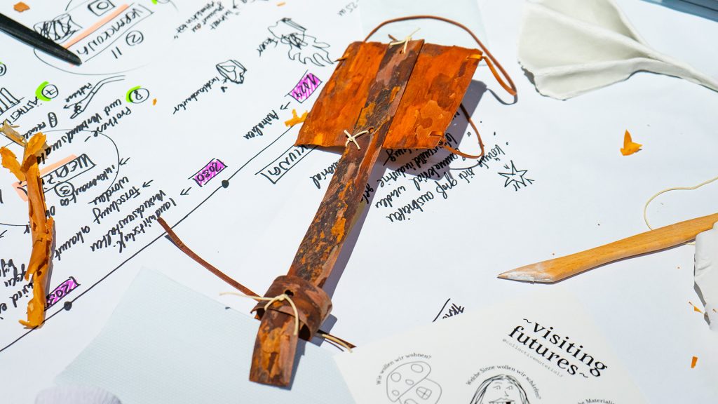 Together, this workshop group developed a speculative scenario in which tree bark could be used as a dressing material in the future, applying their perspectives as a graduate in environmental sciences, a public engagement coordinator, a handicraft enthusiast, and a process designer.
