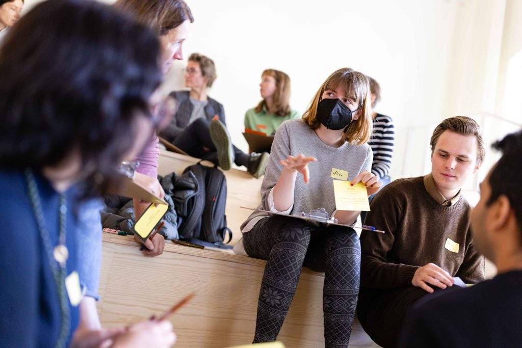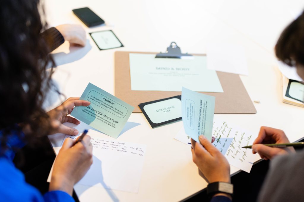Die Forschenden Prof. Dr. John Nyakatura, Felix Rasehorn und Apoorv Vaish gaben Einblicke in ihre Arbeit zum Thema aus den Perspektiven der Zoologie, des Designs und der Robotik. Aktiviert durch diese Spotlights entwickelten die Teilnehmenden Alltagsgegenstände aus einer bio-inspirierten Zukunft. In der Gesamtschau entstand aus Ideen und Skizzen die spekulative Ausstellung »Coalescence«, die im Jahr 2122 im Museum für Naturkunde bio-inspiriertes Alltagsdesign zeigen könnte.